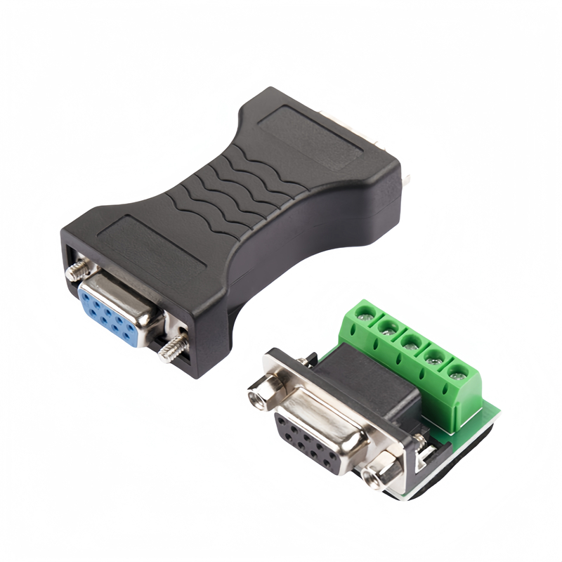 Keywords: RS232 to RS485 converter, DB9 to terminal block, 3.81mm pitch, TUV-certified, panel-mount adapter.